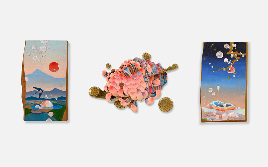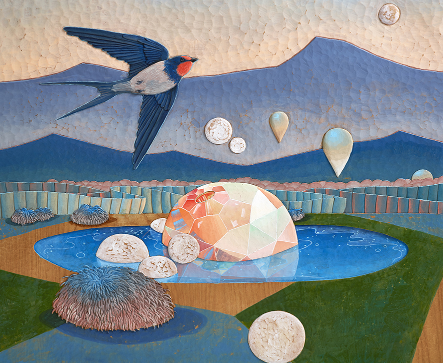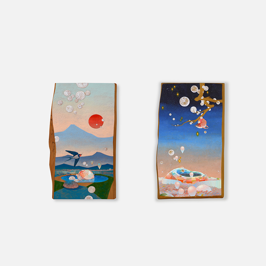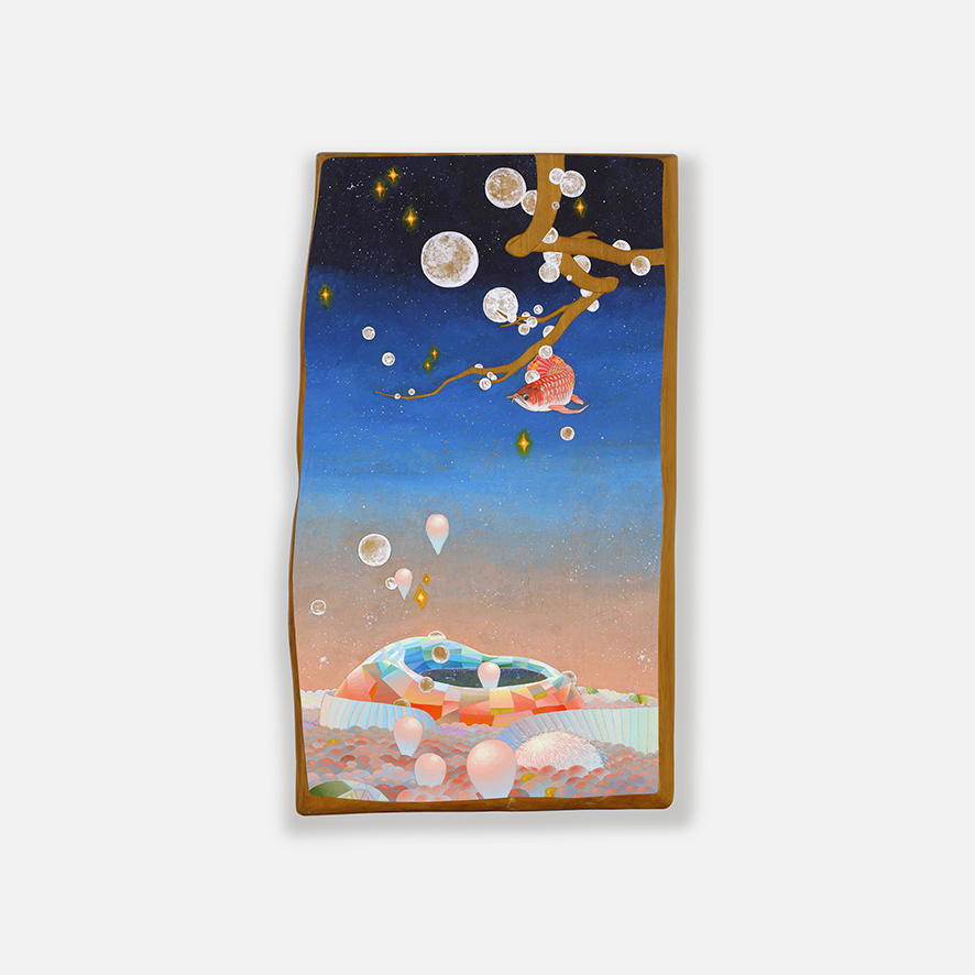 - 《漂浮島》92x55cm 壓克力彩、肖楠木 2023~2024