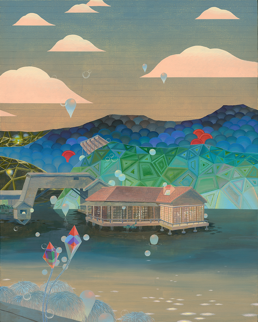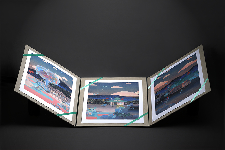 南投的車埕、集集線的終點站,一座隱居在山林裡的小山城,神秘幽靜。 這個在1933年成立,1960年到車埕設廠,日治時期代理台灣林木進出口的大公司,隨著時代演進而漸變成一個可供懷舊、休憩、遊玩又深具歷史文化意義的園區。 我們為此進行了一系列的專案創作。三件一組,坐在茶屋裡品茶觀景,湖光山色,宛如仙境。