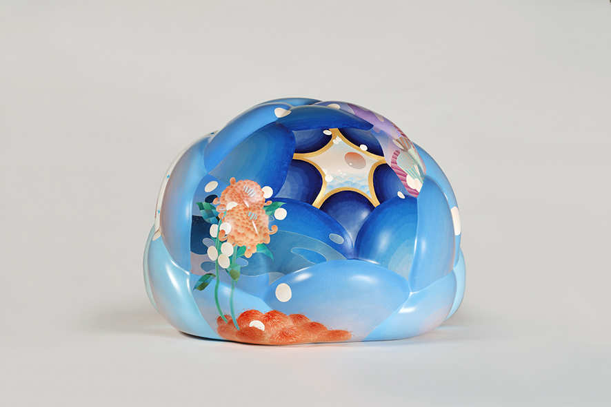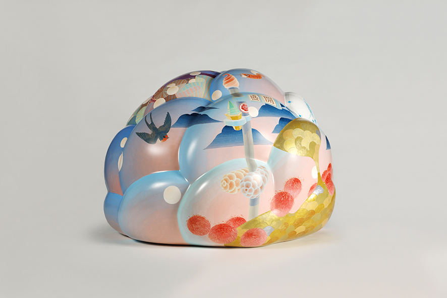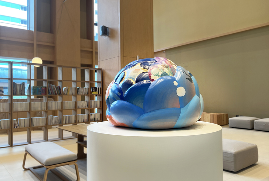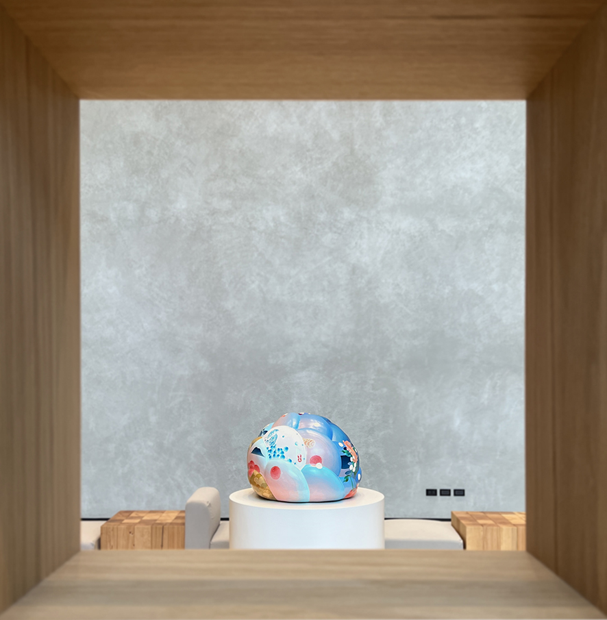 黃柏勳的創作常以動植物、生活物件、尋常風景為素材。以「自由」和「豐富」為主軸,表現當代藝術的繽紛樣貌與人文情懷。本作品以燕子和龍魚兩個主要素材,來討論自由的對話,並用類似青花紋路的創作方式,作為東方風華的底蘊,底材為類似茶花、玫瑰、牡丹等包心球狀花的立體結構,造型完整、色彩溫雅。為當代藝術家黃柏勳極具代表性的作品。