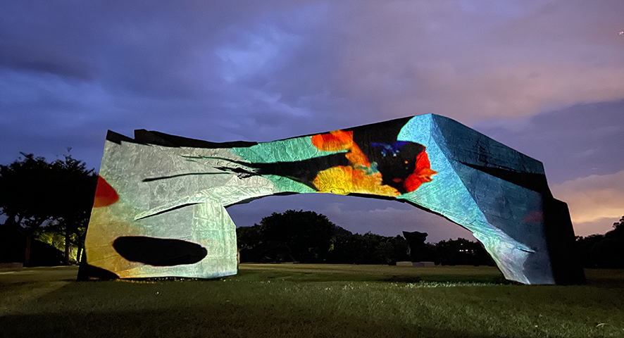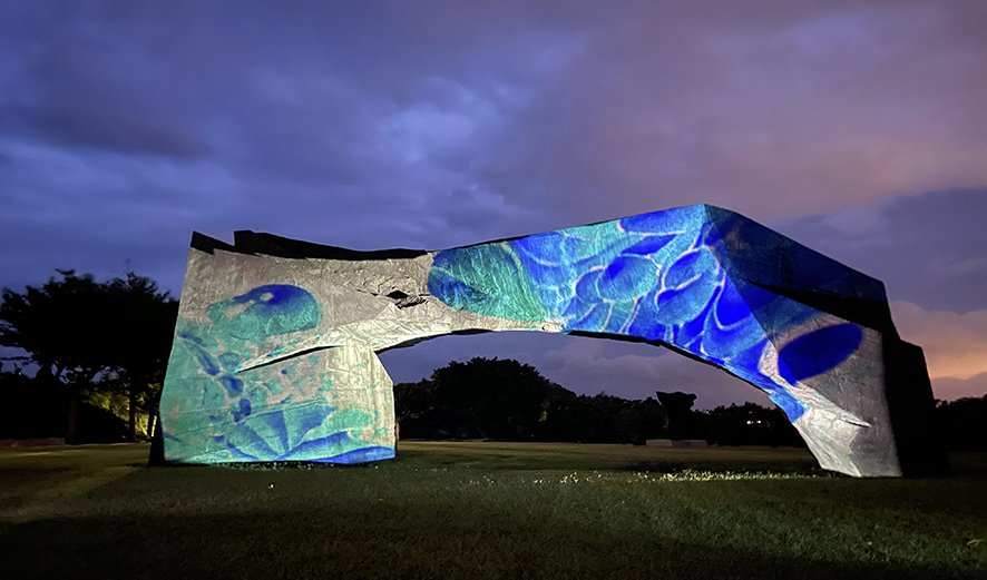 2023夜間開館,以「植物觀」延展為主題,加入參展藝術家黃柏勳的作品圖像為主視覺,用光雕投影於太極拱門,及融入光影活動演出,與沐溫頌缽音療演出,並結合潮8新北特有種-潮青農體驗工作坊,舉辦一年一度北海岸夏夜盛事。