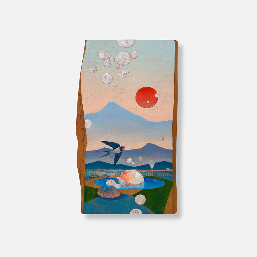 - 《漂浮島》92x55cm 壓克力彩、肖楠木 2023~2024